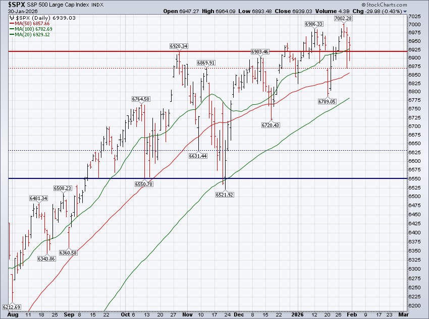 The S&P 500 gained 0.34% this week with Friday's close at 6,939.03. We ended last week's Update writing:
