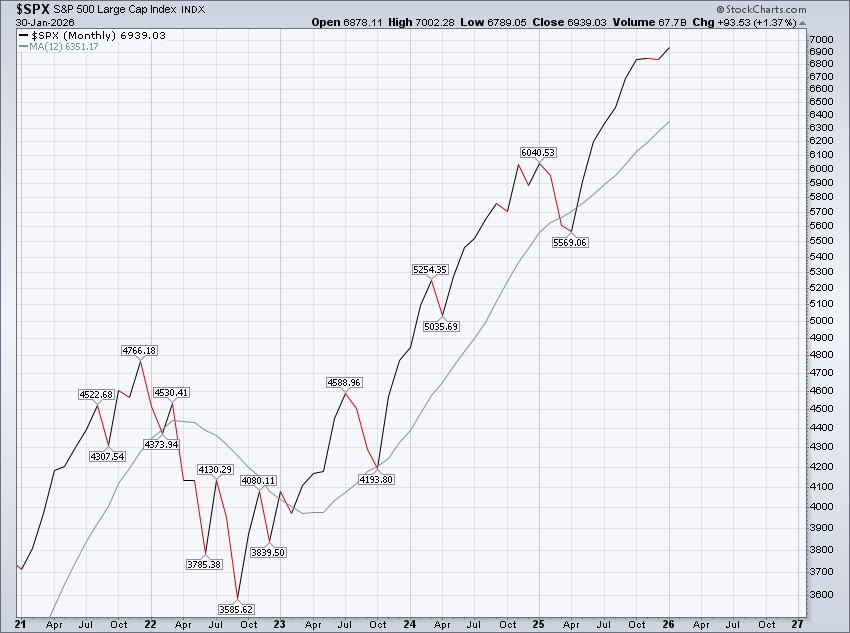 From our Update dated 01/04/2026 we noted that after a seven-month winning streak for the S&P 500 comes to an end (as we saw in the month of December), we "...do find it interesting that, in every prior case, the S&P 500 simply dusted itself off and returned to its winning ways." Naturally, the S&P 500 got back to its winning ways in January.
