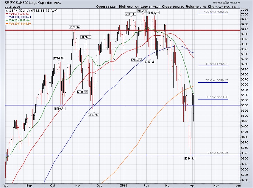 The S&P 500 closed March on Tuesday. Month-end magic saw the S&P 500 gain 2.92% on Tuesday, the final trading day of March, to clean things up nicely into month end. The index still lost -5.09% for the month, but strength on Tuesday left an otherwise nasty month ending on a positive note.