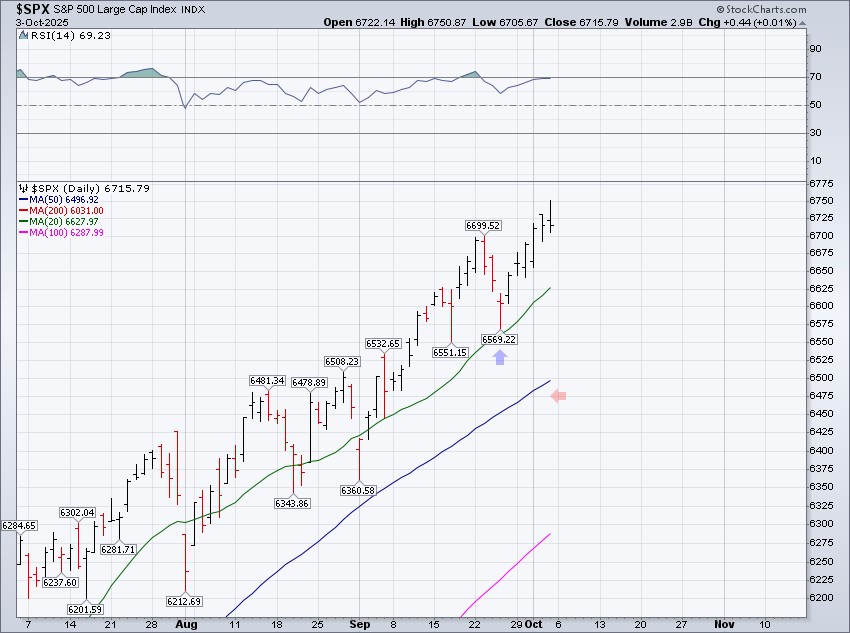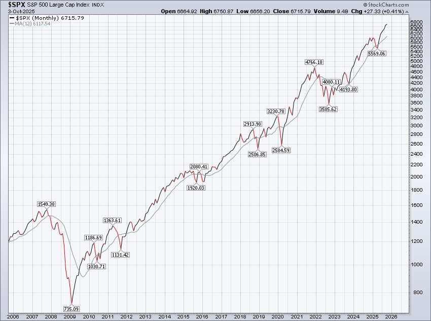 The S&P 500 finished the month of September on Tuesday this week, closing at 6,688.46, a gain of 3.53% for the month. September's monthly close is a new all-time high monthly close and marks a five-month winning streak for the S&P 500.